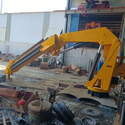 大型折臂吊可安装在多种设备上进行使用,吊重大,占地小,可伸缩折叠。用于船舶汽车码头固定。装卸货物,起重运载。