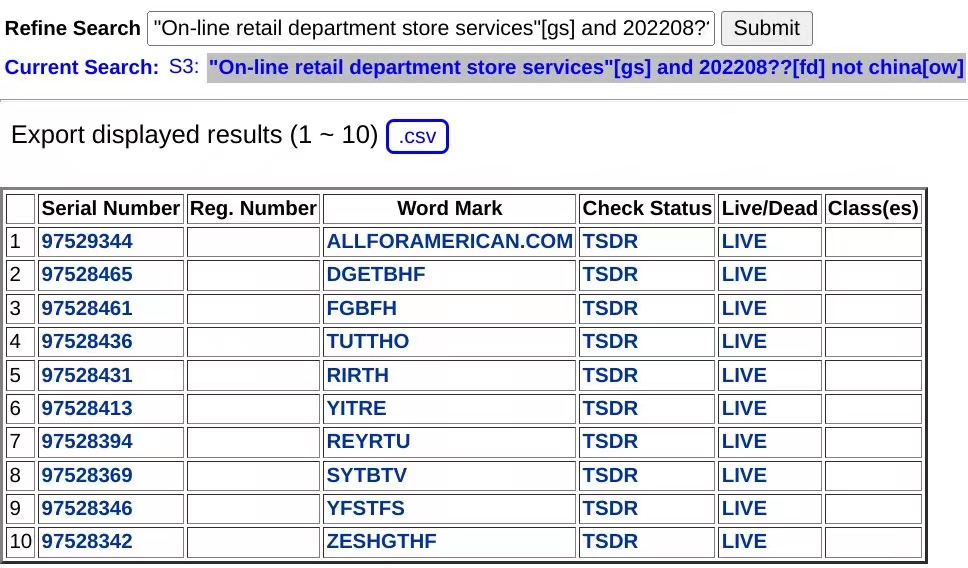 2022年八月美国商标注册趋势,注册申请用于在线零售百货商店服务所有者的地址不在中国。——详细咨询嘉莱皓国际知识产权为您服https://www.gliau.cn/