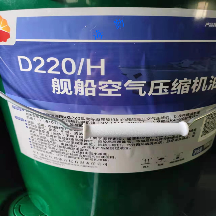 D220/H舰船空气压缩机油以高粘度合成烃和加氢油为基础油,并加有抗磨,抗氧,防锈等多种添加剂调合而成。