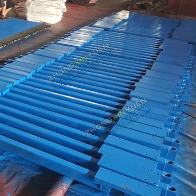 地铁支撑架用于城际铁路地铁轨道施工要求采用人工散枕。龙门吊配合框架安装形成轨排,利用轨排上的高程螺杆调节器合轨向调节装置调整轨排的水平和高度,然后进行混凝土浇筑,形成整体道床。