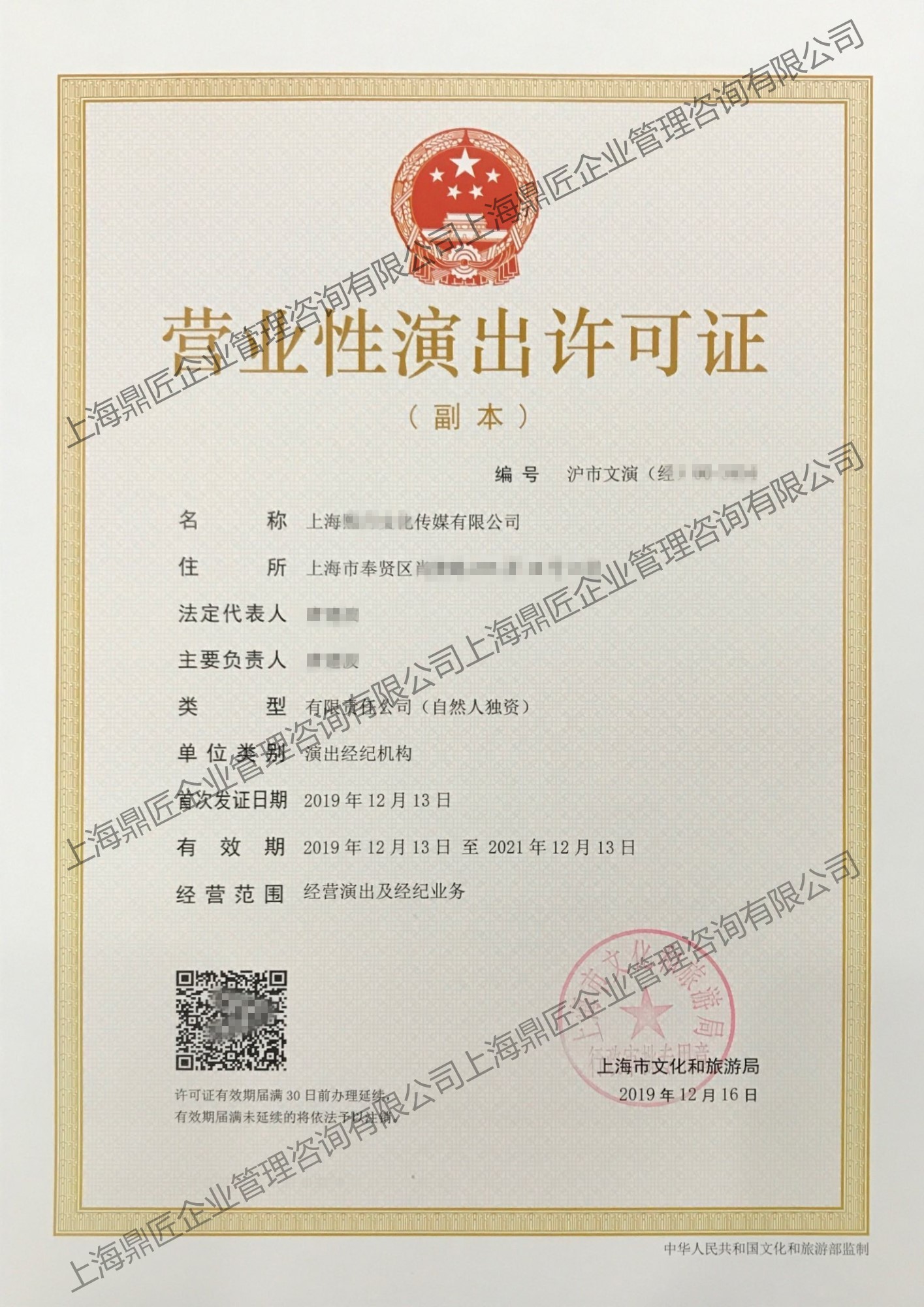 3、经营范围有“经营演出及经纪业务”没有行业要求,一般是文化类公司。