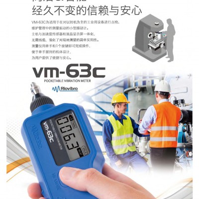 日本理音(RION)公司生产的VM-63C测振仪重250克,VM-63C主要用于机械设备的振动位移、速度(烈度)和加速度三参数的测量,利用VM-63C在轴承座上测得的数据,对照国际标准ISO10816,或者利用企业、机器的标准,就可确定设备(风机、泵、压缩机、电机等)当前所处的状态(良好、注意或危险等)