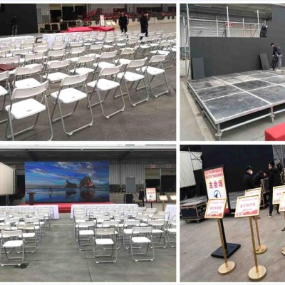 4, 活动现场布置:展具布置,门型展架,易拉宝,弓形展架,德展,展板架等现场布置。
