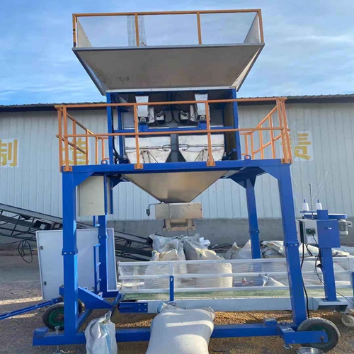 同其他同类产品的优势是可以打包粉类物料,粕类物料,颗粒物料。因为打包机没有斗,所以对于较为蓬松的物料打包效果更好,物料进入设备后以袋子为斗进行定量称量。有斗称打包粉类物料效果不好的原因是计量斗容量有所限制,像玉米压片这种物料定量打包50公斤的话斗的容积不够,但是无斗称就不一样,想打包多大都可以打包,不会出现容积太小等问题。像对于不易流淌的物料或是有湿度的物料也比较适合无斗称,这种物料从设备上方进入打包机,当然是接触面积越小越好,物料不接触计量斗,也就减少接触面积,避免物料粘黏内壁。所以单工位无斗打包称相对有斗称有很大的优势。