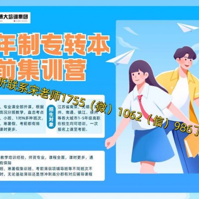 所以备考五年制专转本一定要报班,把英语成绩拉上来,专业课从零学,中途换专业也有老师上课,备考无风险更轻松,提高成绩更有保障,江苏瀚宣博大专转本学校,16年专业从事五年制专转本英语和专业课培训辅导,老师教学经验丰富,对考点了解透彻,课程更加全面,包含英语和所有主考院校全部专业课,课时更多,周末、寒暑假、考前,每周2-5天课程安排,教学针对性更强,历年通过率保持在85%以上,部分专业更是全部录取,南京、无锡、苏州、南通、镇江、徐州等各大城市均开设校区,一次报名上课至考前,先试听后报名,具体课程详情及预约试听课联系宋老师1755(微)1062(信)986了解!