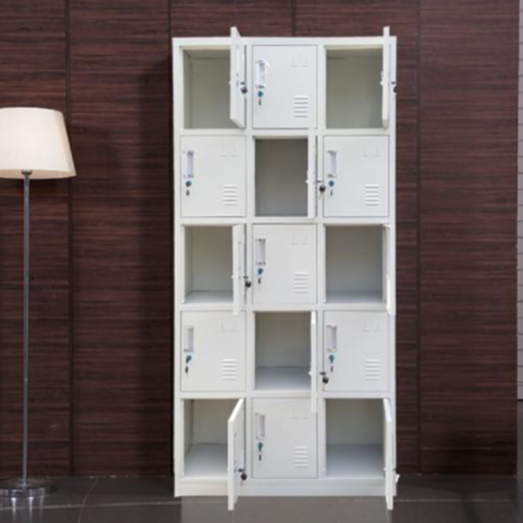 东莞康胜钢制储物柜十五门结构设计耐用厚实不易损坏。