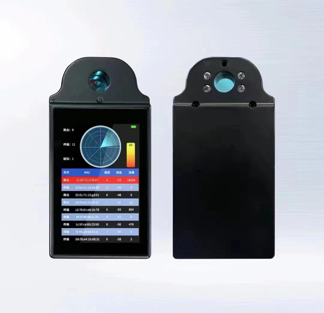 设备通过接收目标与无线接入点通信时发射的无线信号,对目标信号进行解调分析,从而对周围无线信号进行分析归纳,识别出疑似WiFi偷`拍摄像头。