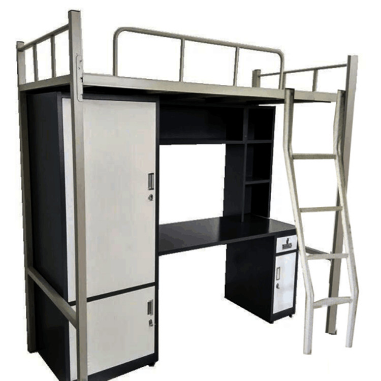 下方书桌区域规划合理,为学习用品、书籍及个人物品提供了充足的收纳与摆放空间,有效保持桌面整洁有序。整体设计在满足基本功能需求的同时,也兼顾了宿舍生活的便捷与舒适感。表面处理工艺细致,不仅提升美观度,也增强了抗腐蚀能力,更经久耐用。