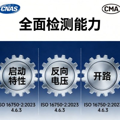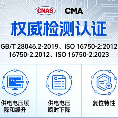 复位特性与启动特性测试聚焦设备的动态响应性能。复位特性测试验证电子设备在供电异常恢复后,能否快速、准确地恢复正常工作状态,无数据丢失或功能紊乱;启动特性测试则模拟车辆启动时的电压变化环境,检测设备在启动阶段的启动成功率和运行稳定性,保障车辆每次启动都能顺利激活各类电子系统。