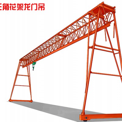 龙门吊具有起升机构、小车运行机构和大车运行机构。这些机构和它们的零部件一般与桥式起重机通用。通用门式起重机的门架结构有单主梁、箱形双梁、桁架等多种型式。取物装置通常采用吊钩、抓斗、电磁吸盘,也可两用(吊钩+抓斗、吊钩+电磁吸盘、抓斗+电磁吸盘)或三用(吊钩+抓斗+电磁吸盘)等。