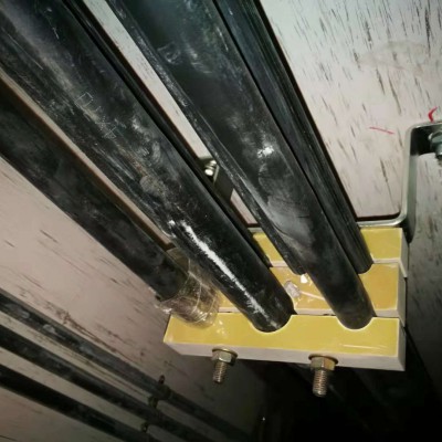 4. 防涡流电缆固定支架型号:YGF-53,外形尺寸:240×55×25mm,螺杆中心距:145mm,适用电缆外径184-240mm2。