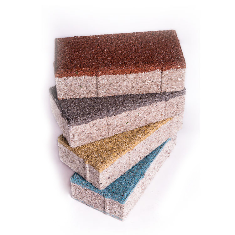 1、布料方式:透水砖采用二次布料的方式,面料为细小的颗粒,起着调色、防止孔隙堵塞的作用;底料采用经合理科学配比的陶瓷颗粒,确保透水砖具备高强度、高透水、保水等特性。