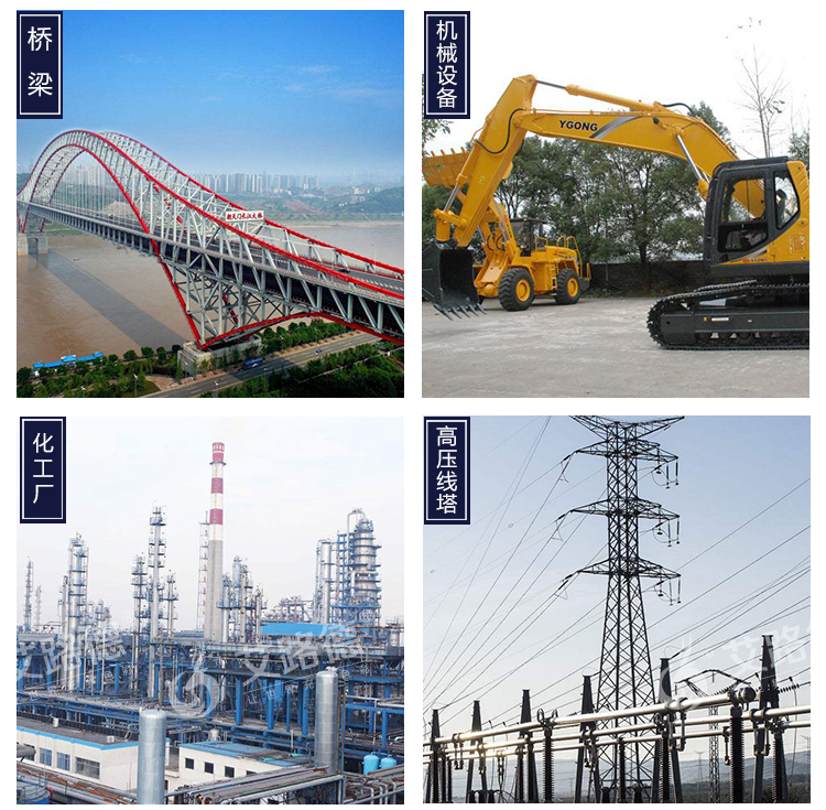 ②现代交通运输:高速公路护栏、桥梁、船艇、集装箱、火车及铁道设施、汽车、机场设施;