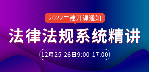 大立教育2022二级建造师系统精讲课程开课了,本期上课科目为《建设工程法规及相关知识》,课程详情如下: