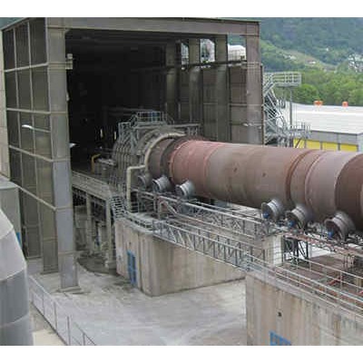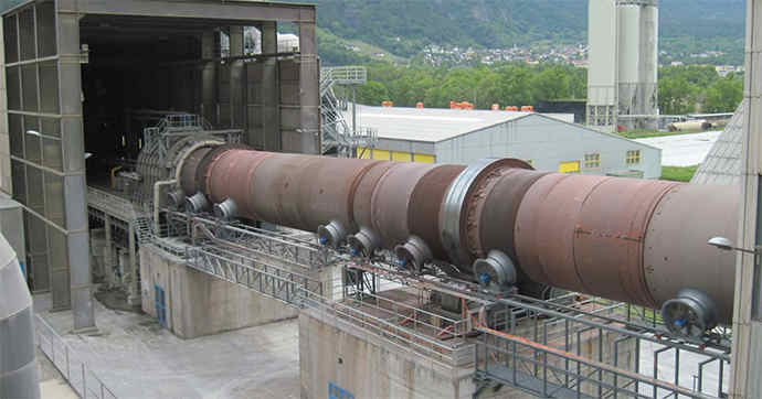 原物料从窑尾筒体高处的下料管喂入窑筒体内 ,由于窑筒体的倾斜和缓缓地回转,使物料产生一个沿着圆周方向翻滚,又沿着轴向从高温向低端移动的复合运动,物料在窑内通过分解,烧成等工艺过程,煅烧成熟料后从窑筒体的底端卸出,进入冷却机。
