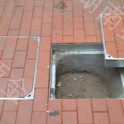 方井的材质多,有球墨铸铁方井、不锈钢方井、树脂方井等,井盖的尺寸多,300mm到1500mm左右。方井可以定制,也有内圆外方的井盖,表面可以定制文字以及图案。